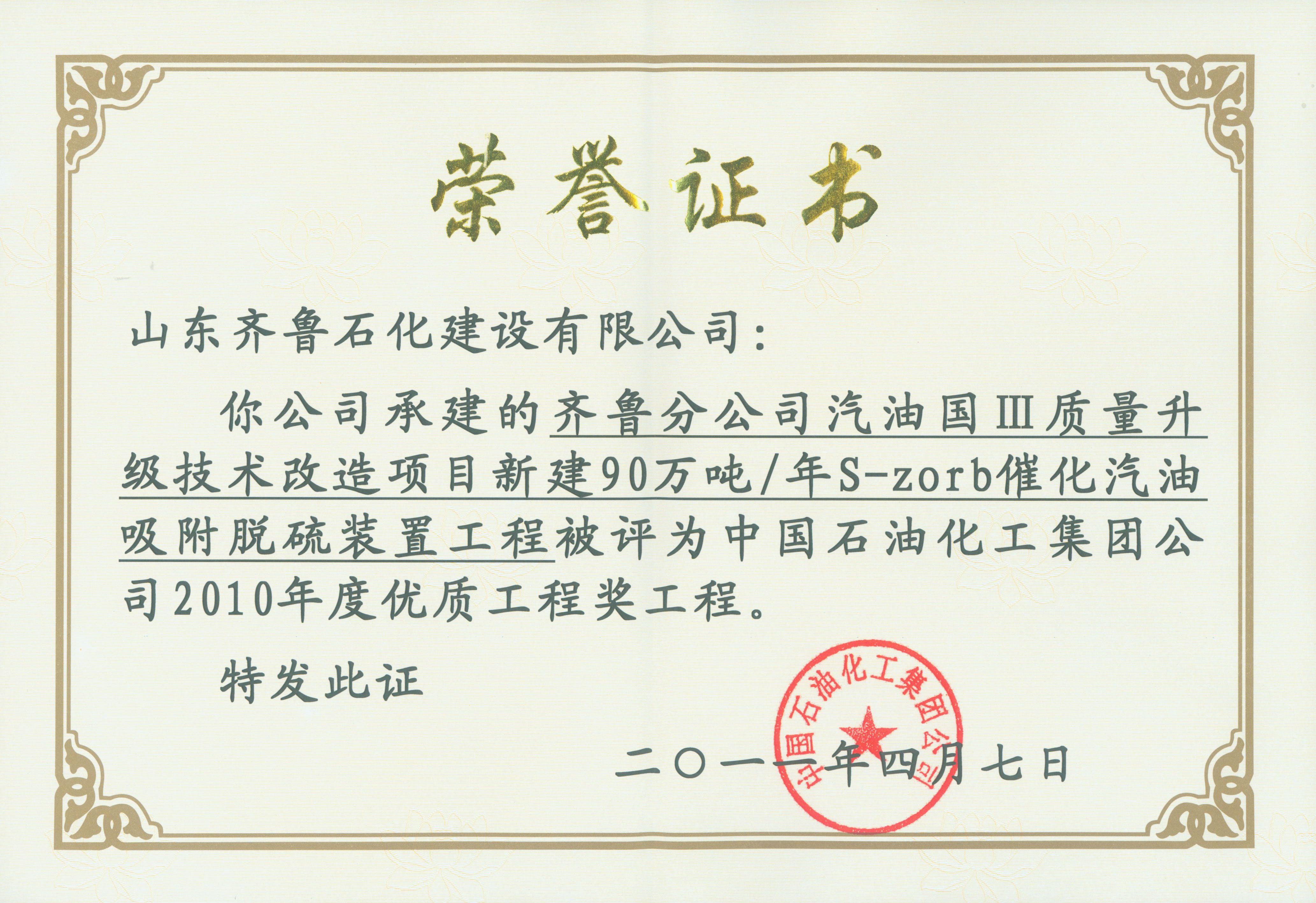 中國石化優(yōu)質(zhì)工程獎(jiǎng)
